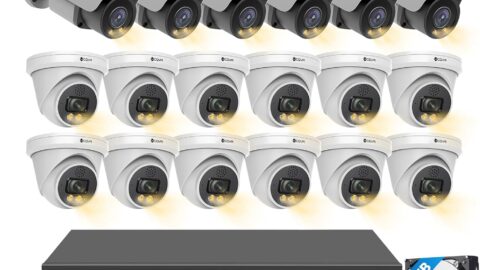 32 Channel Security Camera System, 2-Way Audio Talk, Person Vehicle Detection & Smart Color Night Vision, UHD NVR 8TB HDD, 12 Dome 12 Bullet 5MP PoE IP Camera Business IP67, LYH37Y5M3224