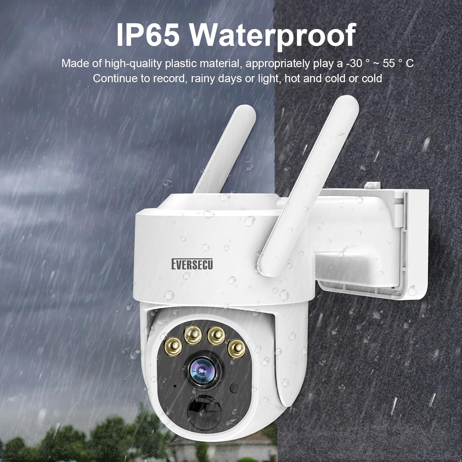 【Enhanced Dual 5dBi Antennas & IP65 Waterproof】The dual WiFi antenna of the battery surveillance camera will provide better connectivity and can withstand normal weather conditions. The best operational temperatures are between -13°F to 140°F (-25°C to 60°C).