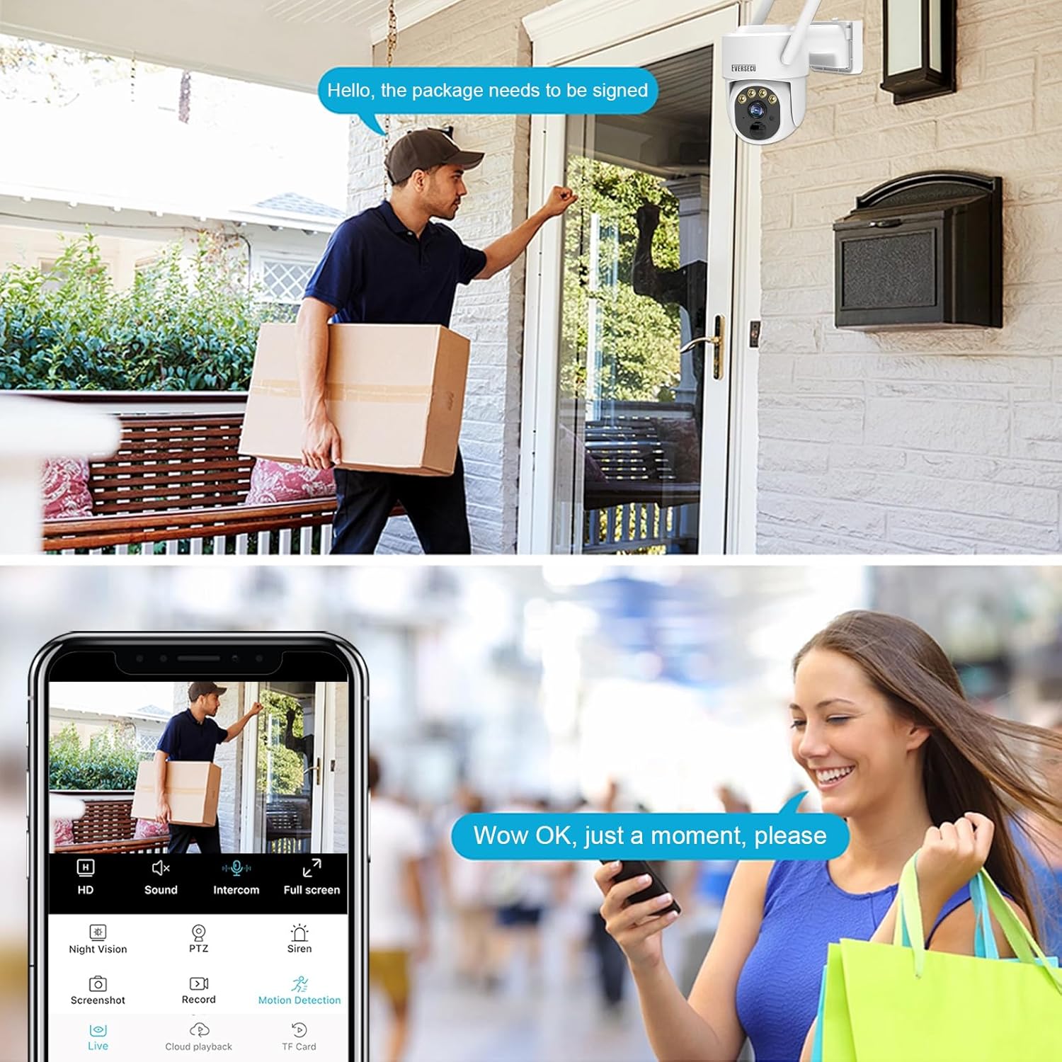 【Smart PIR Motion Detection and Instant Alerts】When the outdoor security camera motion sensors are triggered, you will get an instant alert on your phone in just 2 seconds and be able to see what is happening.