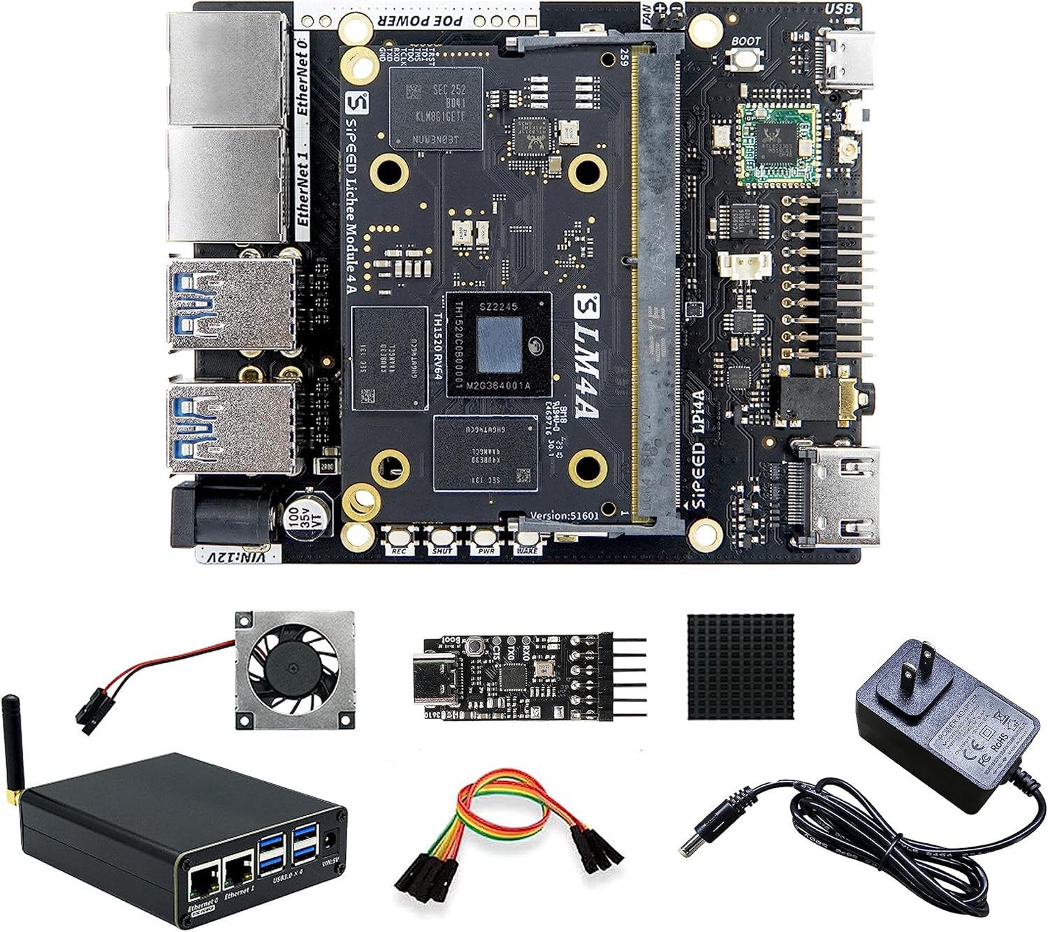 LicheePi 4A RISC-V Linux Single Board Computer, 64bit LPDDR4X 8GB Open Source IoT Development Board, with RISC-V Quad-core 2.0GHz TH1520 CPU, WiFi4 BT5 Dual Gigabit Ethernet, Support Linux Android