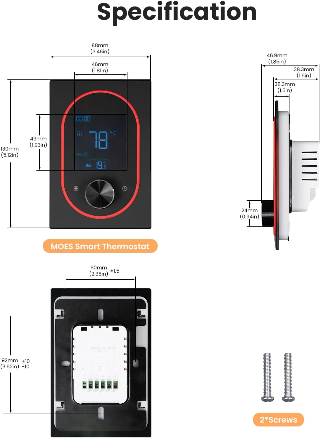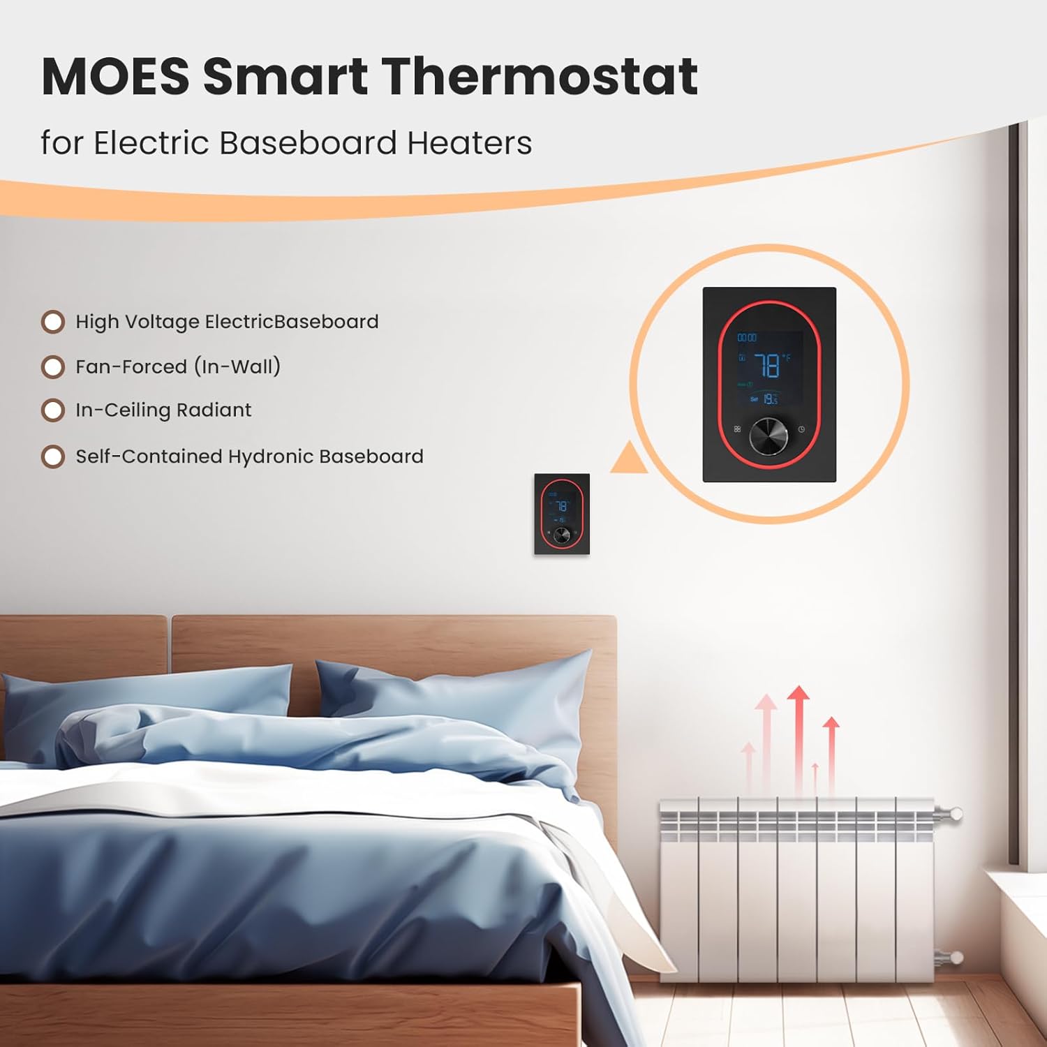 【NOTE】Only Support 2.4GHz WiFi/Only support electric baseboard heaters(If your house has only one thermostat, the MOES thermostat will not be compatible with your house.)