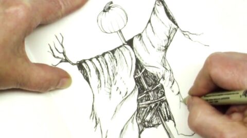 How to Draw a Spooky Pumpkin Head Scarecrow
