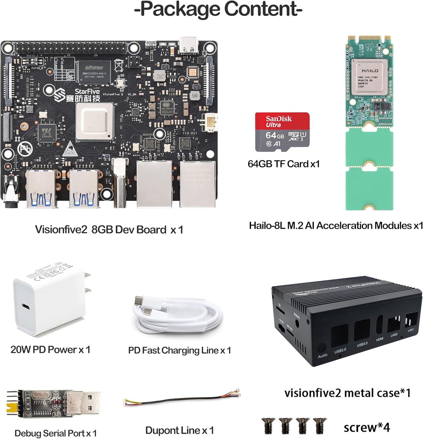 Visionfive2 Hailo RISC-V Linux AI Single Board Computer Kit, Hailo-8L M.2 AI Acceleration Modules Kit, StarFive JH7110 CPU LPDDR4 8GB RAM, Dual Gigabit Network, 4K HDMI Display (Bundle4)
