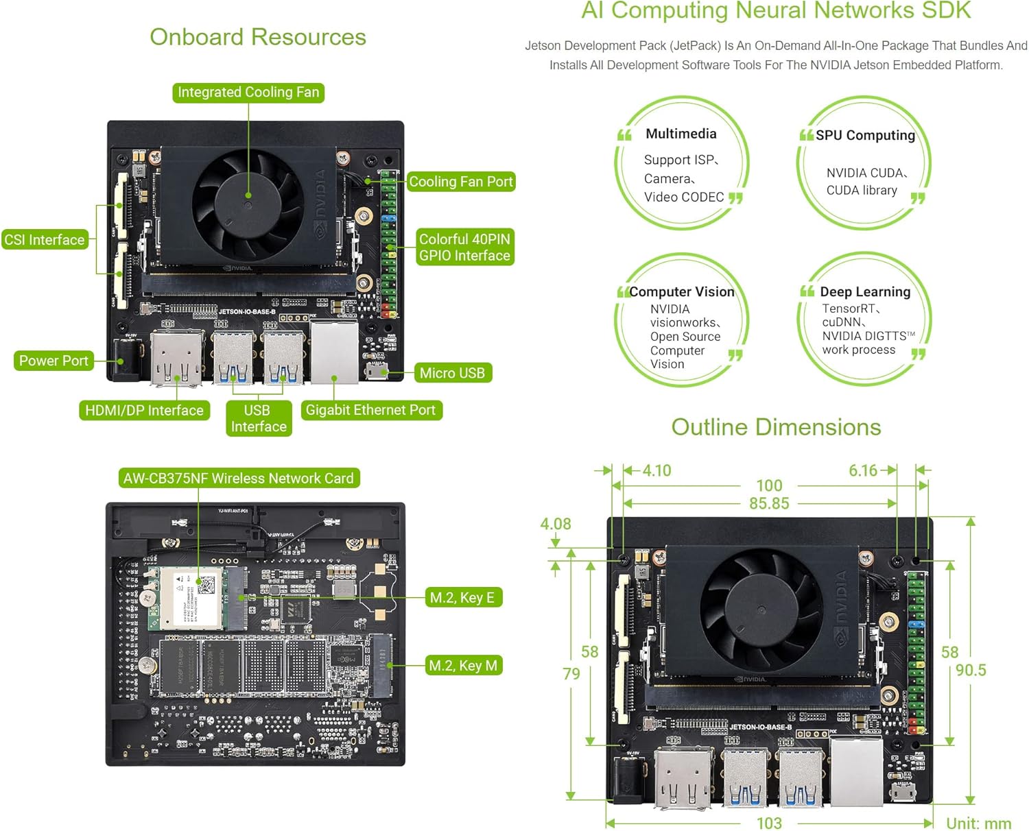Based on Jetson Xavier NX Module, providing almost the same peripheral interfaces, size and thickness as the Jetson Xavier NX Developer Kit.